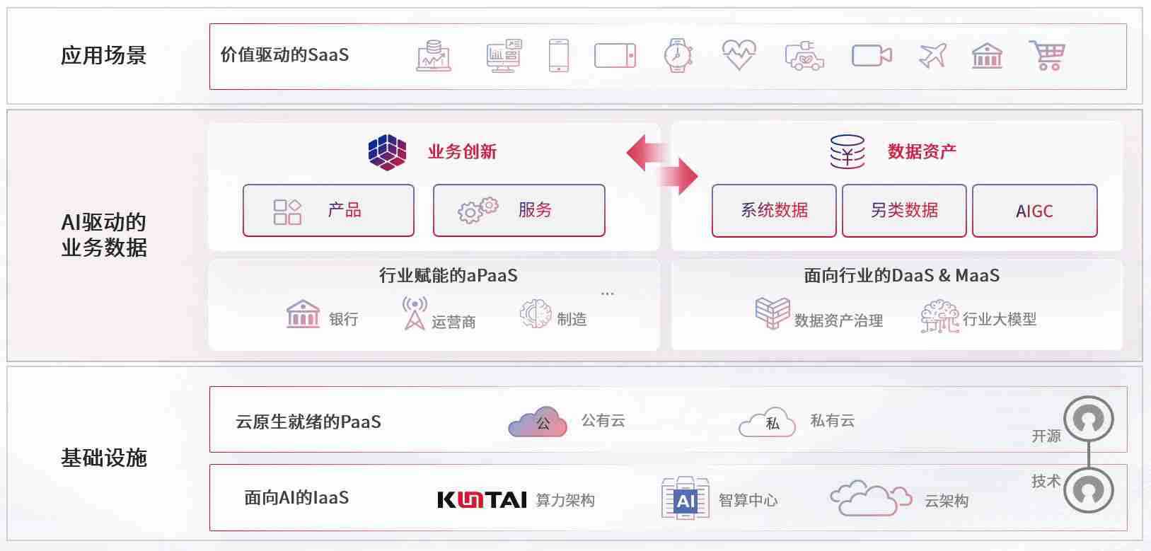 数字时代,,,围绕企业数字化转型的关键要素,,谈球吧数码开创性的提出数云融合战略和技术体系框架,,,着力在云原生、、数字原生、、、、AI原生和信创产业上架构产品和服务能力,,,,为处在不同数字化转型阶段的快消零售、、汽车、、、、金融、、医疗、、、、政企、、教育、、运营商等行业客户提供泛在的敏捷IT能力和融合的数据驱动能力,,构建跨界融合创新的数字业务场景和新业务模式,,,助力企业级客户建立面向未来的核心能力和竞争优势,,,,全面推动社会的数字化、、智能化转型升级。。